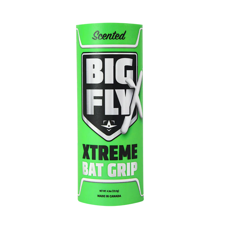Big Fly X Scented Bat Grip Stick gets you in the zone when you step into the batter’s box. The Big Fly X Stick offers an extreme level of grip with a clean fresh scent for hitters who want pro level tack for a locked in feel. Includes metal protective case to keep this product fresh and ready to apply Xtreme Tack Stick with extra prin rosin with pine tar for pro level tack Apply to the taper of the bat and transfer to the grip Scented to put you in the zone Can be used on all bat types